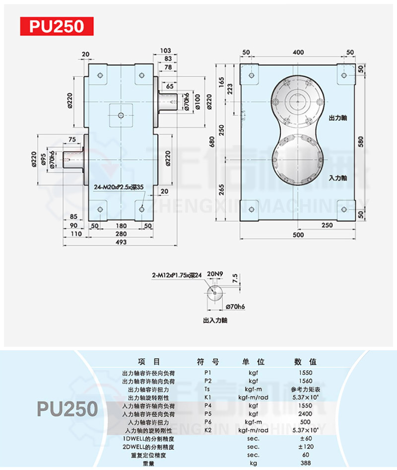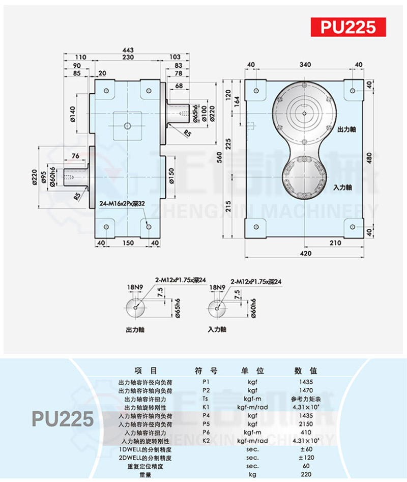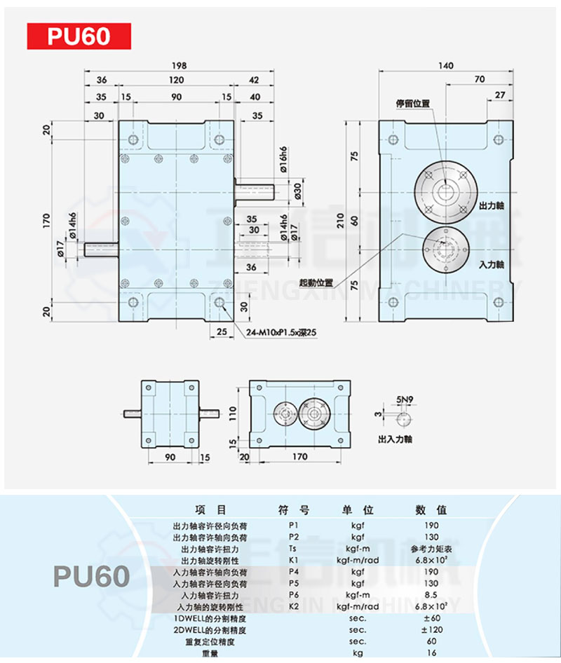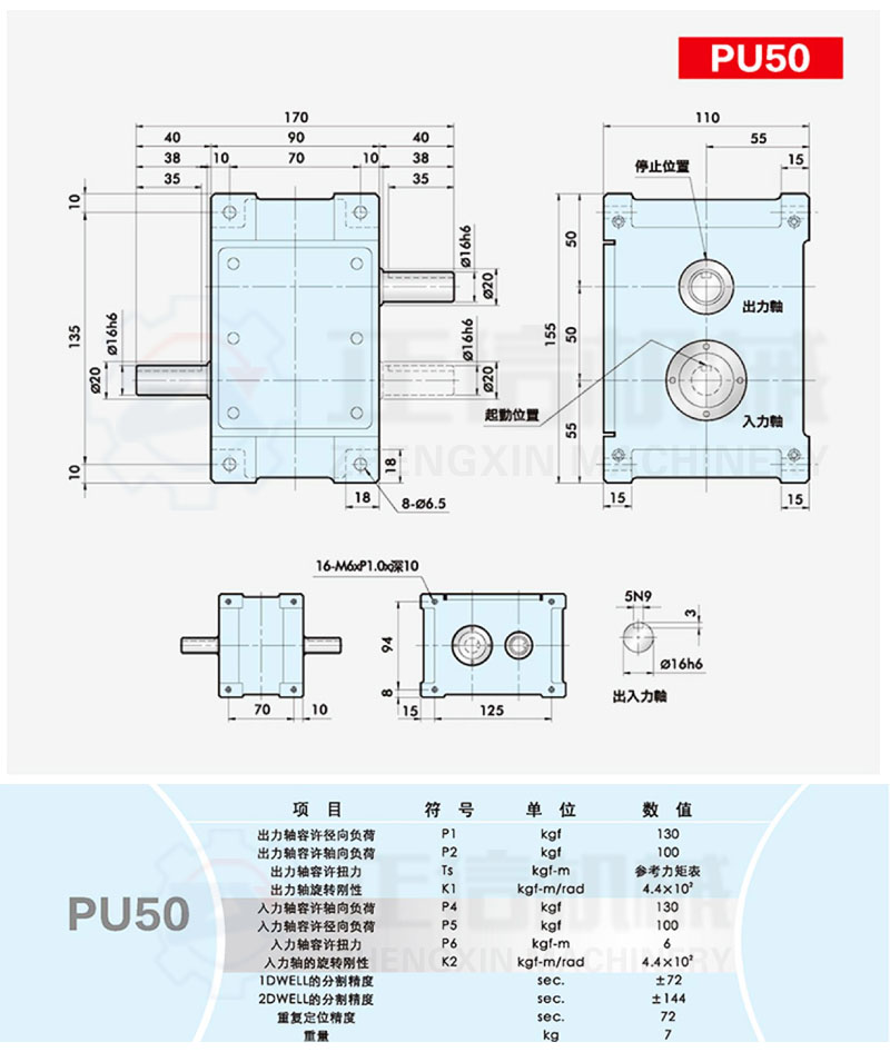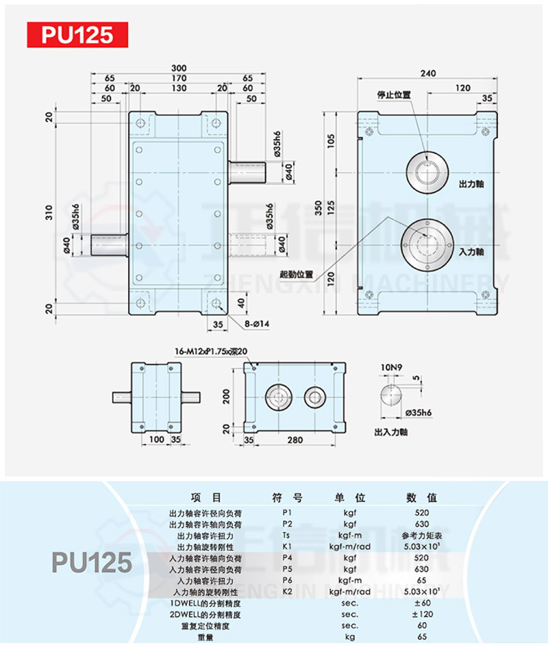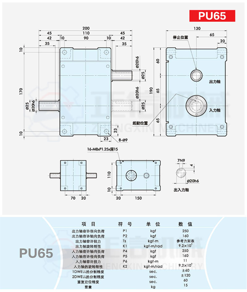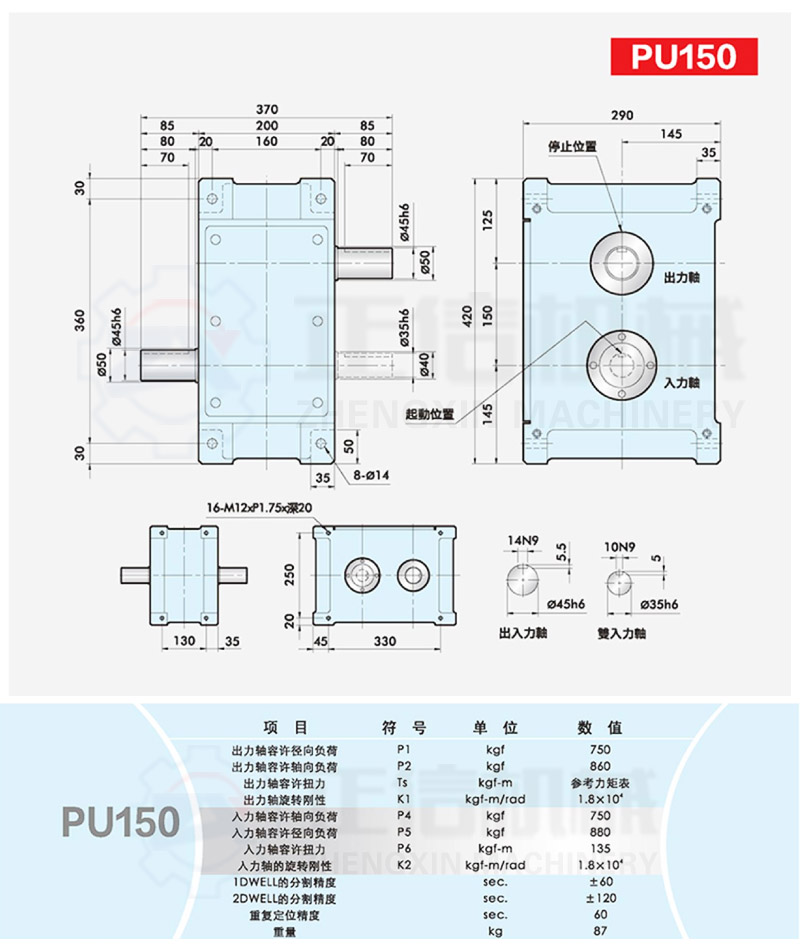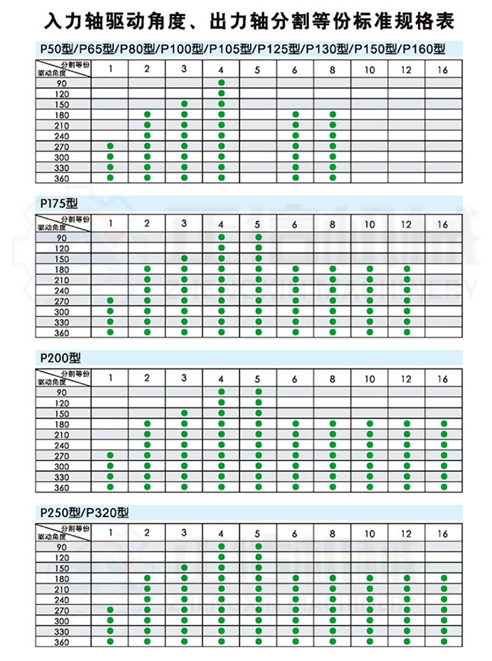 此機(jī)種是內(nèi)含二片固定在輸入軸上的版型凸輪驅(qū)動(dòng)輸出軸上的分度盤以完成分度,此分割器有平行共軛凸輪的機(jī)構(gòu)設(shè)計(jì),最合適供給節(jié)距較大的輸送帶傳動(dòng)或用于停留時(shí)間較長的間歇分度。另外三片式重負(fù)荷型式,更適合一些快速且長節(jié)距的輸送,并且停留時(shí)間亦比二片式長。