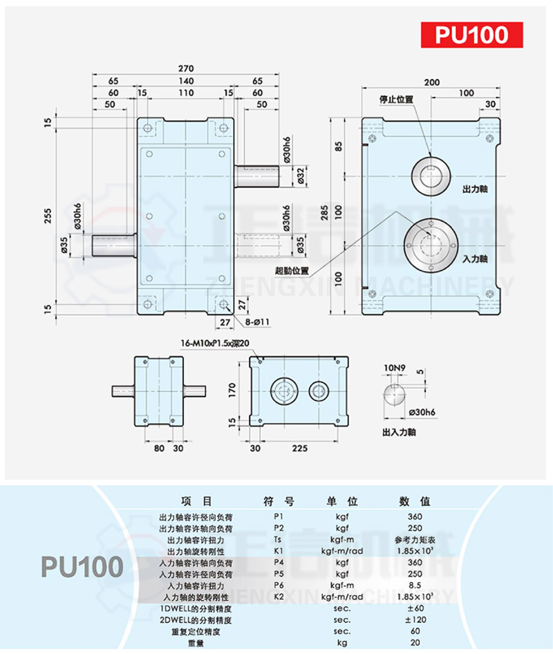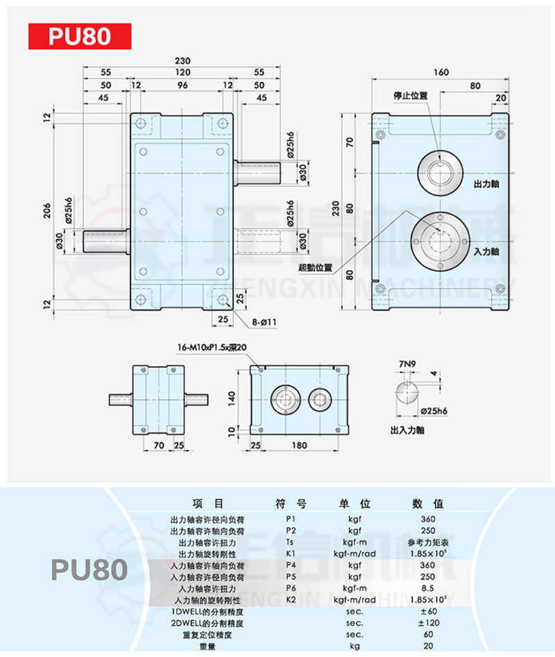出力軸上的旋轉(zhuǎn)臺(tái)可用作自動(dòng)旋轉(zhuǎn)機(jī)器的中心傳動(dòng)力。
