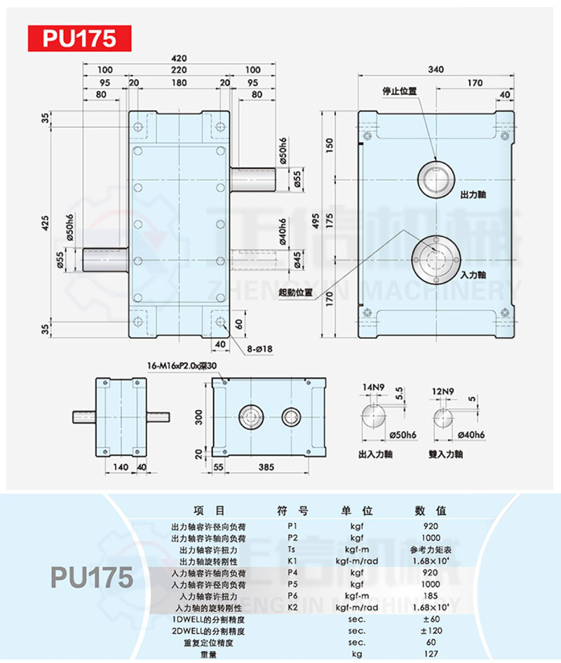 1、簡單的機(jī)構(gòu): 僅有一個(gè)凸輪和出力軸組成,不需要其它不必要的部件即能提供所則的任何間歇運(yùn)動(dòng)。 2、正確的傳動(dòng)裝置機(jī)構(gòu): 在分度或停止的時(shí)候,滾子固定在規(guī)定的位置,從而不需要任何鎖定元件。 3、平穩(wěn)運(yùn)動(dòng): 由于輸出軸的設(shè)計(jì)是在任何位置連續(xù)旋轉(zhuǎn)(無論是角、速度和/或加速),因此,轉(zhuǎn)動(dòng)裝置運(yùn)轉(zhuǎn)平穩(wěn),無振動(dòng)和噪音。 4、高精度的分度: 特殊設(shè)計(jì)的在分割器內(nèi)的滾針軸承,在保持較高的分割精確度和高轉(zhuǎn)矩時(shí),確保重負(fù)載的能力。本標(biāo)準(zhǔn)型號的分割精確度為±30"。如果有要求,可提供更高的分割精確度(±15")。 5、高速性能:在精密加工的凸輪與滾針軸承的錐度支撐肋上施加預(yù)負(fù)荷,完全避免產(chǎn)生間隙,使運(yùn)作可靠和高速。完全受控的加速度減少了由于負(fù)荷或振動(dòng)產(chǎn)生的沖擊。 6、運(yùn)動(dòng)曲線:相應(yīng)于所需的用途,可提供: ①變形梯形曲線(MT) ②變形正弦畫線(MS) ③變形等速度曲線(MCV) |
