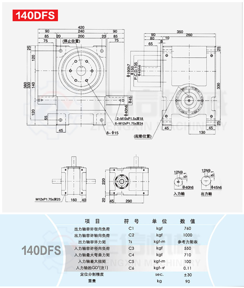 出力軸上的旋轉(zhuǎn)臺可用作自動旋轉(zhuǎn)機(jī)器的中心傳動力。